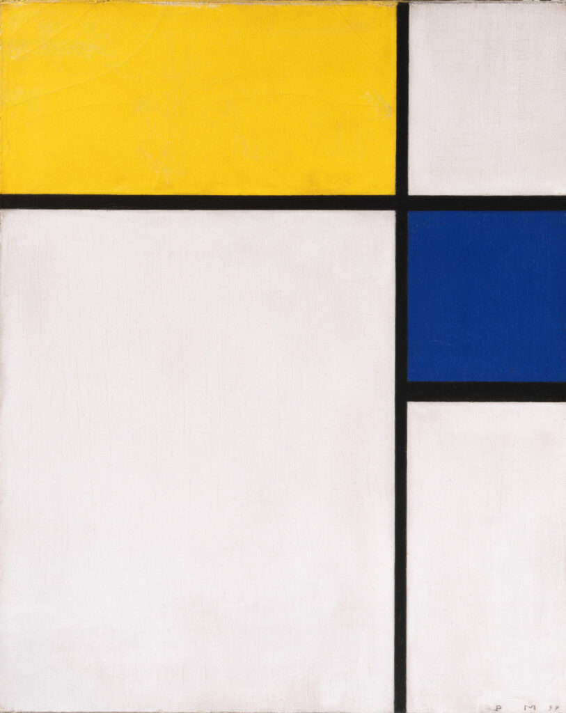 Siamo quasi alla fine dell’esposizione, troviamo Mondrian con le sue tele in cui vige il massimo rigore e la quasi scomparsa del colore come opposizione al mondo sempre più complesso e ingestibile. La mostra si chiude – anche simbolicamente – con la Crocifissione di Chagall del 1940, un’opera che rappresenta tutte le paure e i sentimenti dell’imminente nuovo conflitto mondiale.