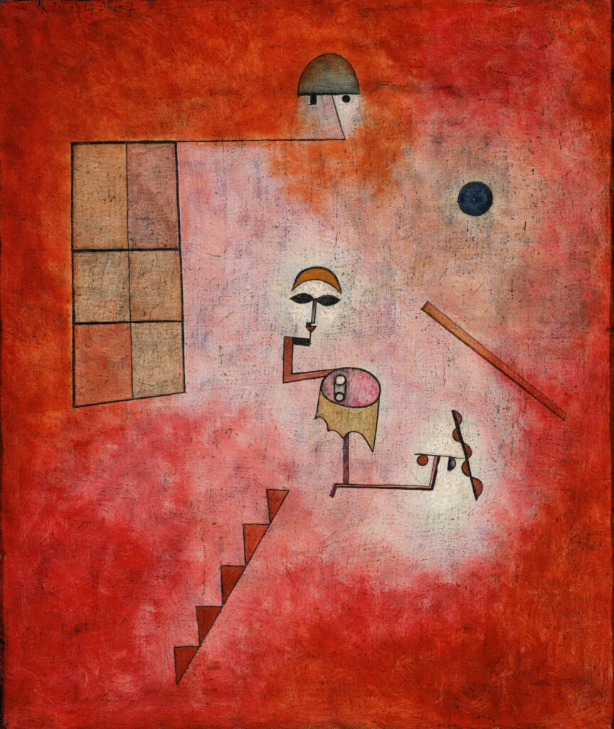 Subito dopo i pannelli espositivi dell’introduzione e della presentazione del Philadelphia Museum of Art troviamo il primo quadro esposto, l’Autoritratto di un giovane Picasso del 1906. A seguire le opere sono esposte in ordine cronologico e gli eventi storici si riflettono nei temi e nei colori delle opere: c’è la tragedia collettiva della Prima Guerra Mondiale, la rivoluzione russa, la Repubblica di Weimar in Germania e l’esperienza del Bauhaus, l’ascesa al potere del nazionalsocialismo, la Guerra Civile in Spagna, la ricerca di nuovi orizzonti alternativi alla realtà.