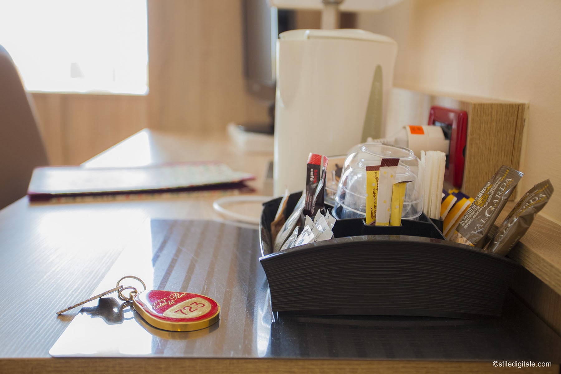 Arredata con mobili in stile vintage, trasmette un calore particolare così come tutto il resto della struttura dove marmo e legno fanno da padroni, dando al cliente la sensazione di trovarsi nella propria casa.