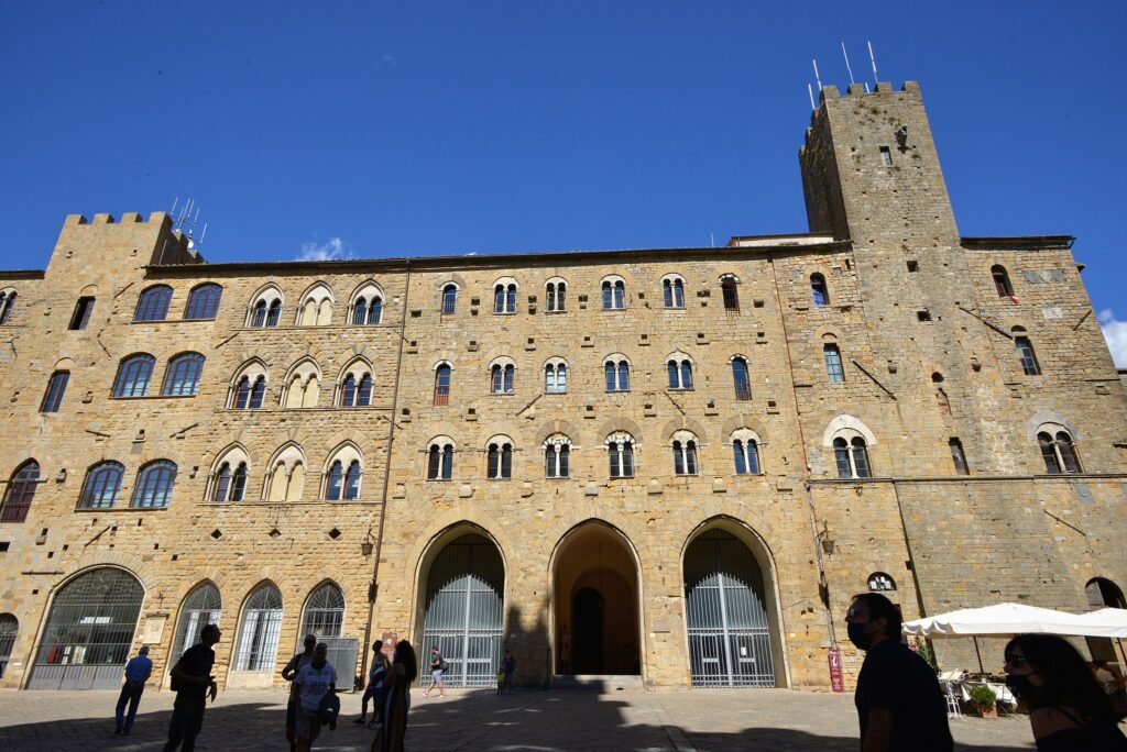 Se avete trovato in Rete immagini di Volterra, è molto probabile che ritraessero la piazza principale, Piazza dei Priori, con l’imponente Palazzo omonimo. Palazzo dei Priori è il palazzo comunale più antico della Toscana, è stato costruito all’inizio del 1200 e oggi ospita gli uffici del comune di Volterra. La facciata in pietra è decorata con targhe di terracotta che ricordano antiche famiglie fiorentine (perché Volterra in passato fu governata da Firenze) e un’alta torre chiamata del Porcellino spicca su tutta la struttura. Vale la pena affacciarsi all’interno per ammirare l’atrio con gli stemmi dei priori della città e la splendida sala del Consiglio. Intorno si affacciano altri palazzi storici come il Palazzo Vescovile e dimore signorili.